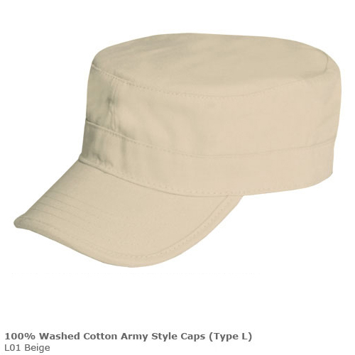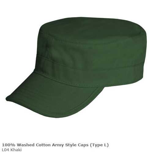 > 100% Washed Cotton Army Style Caps (Type L)