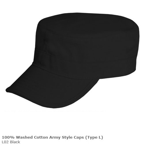 > 100% Washed Cotton Army Style Caps (Type L)